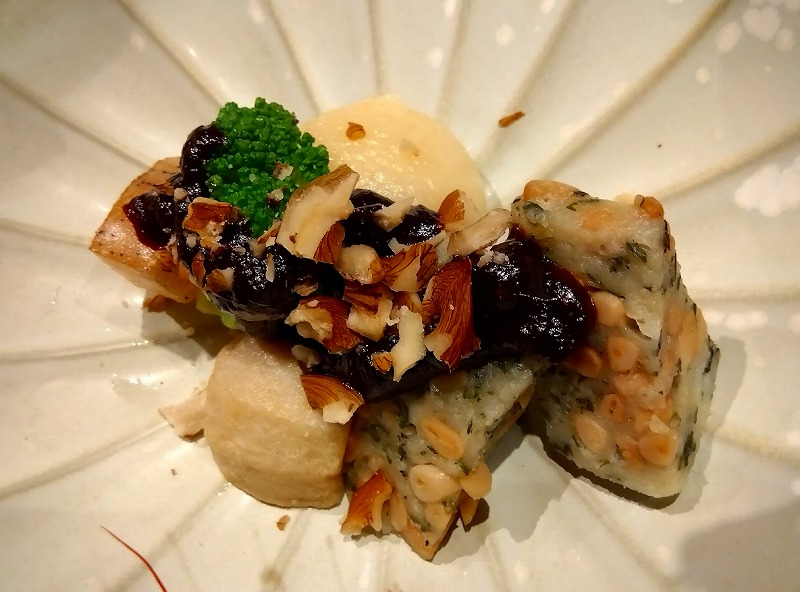 「ゆり根のお饅頭と蓬生麩と旬野菜の胡桃味噌田楽」